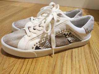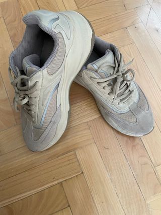 Zapatillas de la marca Zara en color beige.Talla 38.Nunca se han usado. - Diseño deportivo. - Cierre con cordones. - Detalle de costuras.