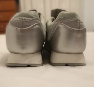 Zapatillas deportivas de mujer Zara TRF (Traffic). Estilo retro-running muy de moda. 👟 Diseño: * Color principal: Verde menta / Agua suave en tejido efecto ante (suede). * Detalle Top: Talón en color plateado metalizado [ver fotos]. * Suela cómoda con buen agarre. 📏 Talla: 41. ✨ Estado: Muy bueno. Interior limpio y suela con mucho uso por delante. 💡 Talla difícil de encontrar en Zara. ¡Añade algo más y ahorra envío! ⚠️ INFORMACIÓN: 📦SOLO HAGO ENVÍOS (Wallapop Envíos). Rápido y seguro. ⛔ No entrego en mano. #Zara #Zapatillas #Talla41 #Plateado #VerdeMenta #Sneakers #ZaraShoes #Deportivas #Baskets #Size41 #Taille41 #Casual