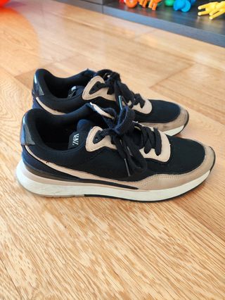Zapatillas deportivas de Zara con un diseño moderno. - Combinación de colores negro y marrón. - Cierre con cordones.