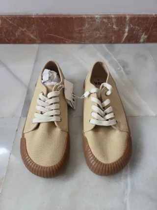 Zapatillas de Zara estilo Barefoot, a estrenar. - Color beige con detalles en marrón. - Cierre con cordones. - Suela de goma.