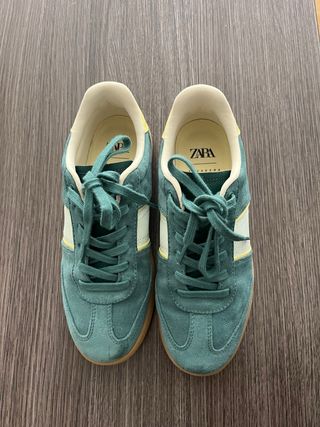 Zapatillas deportivas de Zara con un diseño moderno y cómodo. - Exterior de ante en color verde. - Detalles en color beige y amarillo. - Suela de goma. - Cierre con cordones.