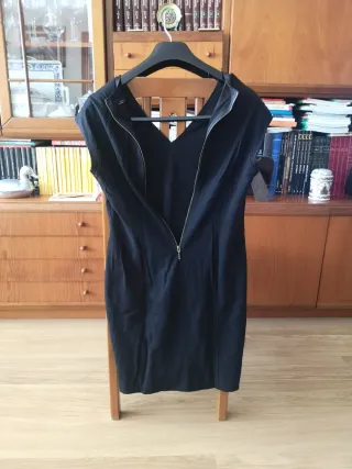 Elegante vestido negro, perfecto para la temporada de invierno. Su diseño es versátil y cómodo. - Tejido de punto suave. - Manga larga. - Corte recto. Se trata de un vestido de tubo (o bodycon / ajustado) de color negro, de la marca Zara. El vestido tiene cuello de pico, es sin mangas y cuenta con una cremallera trasera visible. Este tipo de prenda es muy versátil, un clásico atemporal que puede utilizarse en diversas ocasiones, desde eventos formales combinándolo con accesorios elegantes, hasta looks más casuales con zapatillas y una chaqueta.