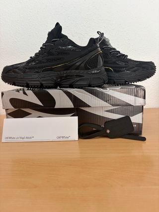 Zapatillas Off-White modelo Be Right Back en color negro. Incluyen su caja original, etiqueta y accesorio. Zapatillas Off-White modelo Be Right Back. - Diseño en color entero negro. - Talla 42. -Nuevas y la mejor calidad que existe en cada material de la zapatilla -Zapas limitadas en stock, se encuentra este modelo en especifico agotado -No se aceptan devoluciones -En persona, no se aceptan envios -Se aceptan ofertas de precio