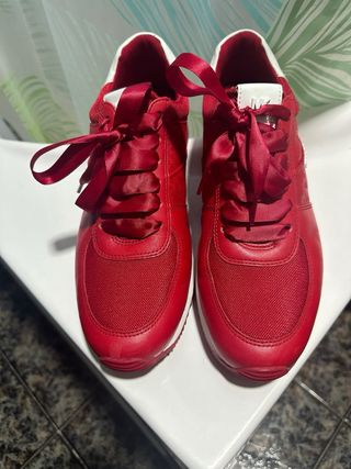 Zapatillas de la marca Michael Kors en color rojo y blanco. - Detalle de logo en la parte lateral. - Cordones de satén. - Suela blanca.