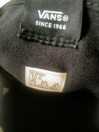 Zapatillas Vans negras para mujer, talla 41. Una sola puesta - Modelo: Vans - Color: Negro - Talla US Mujer: 10.0 - Talla UK: 7.5 - Talla EUR: 41.0 - Talla CM: 26.5 - Fabricadas en Filipinas