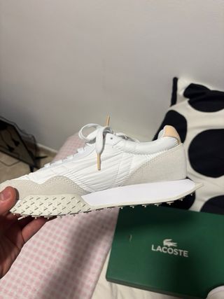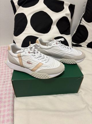 Zapatillas Lacoste en perfecto estado, usadas solo una vez. - Diseño moderno en blanco y detalles beige. - Comodidad y estilo para el día a día.