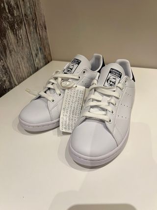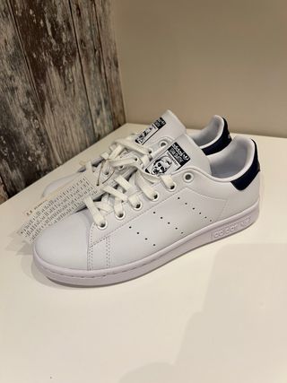 Zapatillas Adidas Stan Smith en talla 36 y 2/3 - Diseño clásico y versátil. - Detalle de Stan Smith en la lengüeta. - Talón con detalle azul.