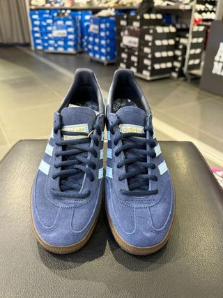 Zapatillas Adidas en color azul marino con detalles dorados y azul claro. Modelo original. - Parte superior de ante. - Suela de goma. - Cierre de cordones.