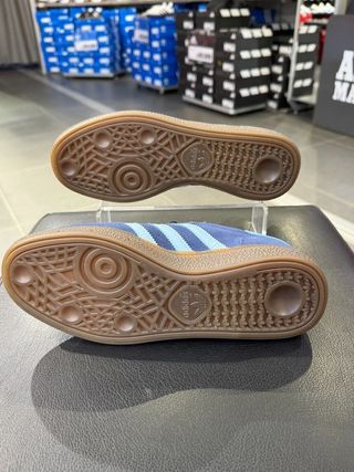 Zapatillas deportivas Adidas para hombre en color azul y detalles dorados. Talla 39. - Diseño clásico con las tres franjas. - Material exterior de ante. - Suela de goma.
