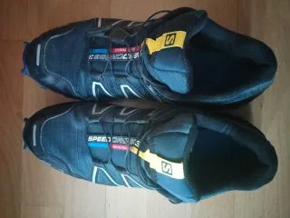Zapatillas de trail running Salomon Speedcross 3. - Diseño en negro y multicolor. - Cierre rápido. - Suela con tacos para agarre en terrenos difíciles. - Puestas dos veces - Talla 44 2/3 o 10.5 americano