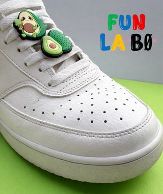 🔵 F U N 🔴 L A B 🟡 by BØ Personaliza tus zapatillas con este pack de pines de aguacates 🥑 📦 El pack incluye: 2 adaptadores (colores aleatorios) para cordones y 3 pines. Elije tus 3 pines entre todos los disponibles 🧩 Coloca el adaptador en los cordones, pasándolos por las ranuras laterales y ajusta la pieza en la zona que quieras. Ahora personaliza tu zapatilla encajando cualquier pin en el agujero central. #zapatillas #sneakers #customsneakers #dijes #pines #crocs #Jibbitz #crocscharms
