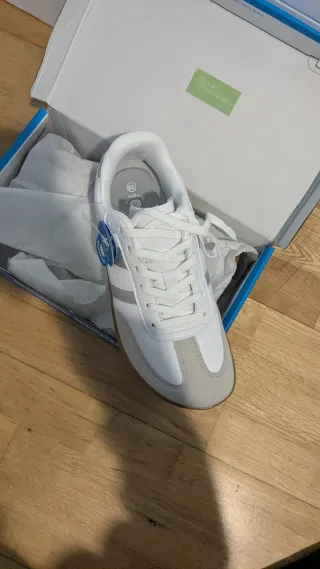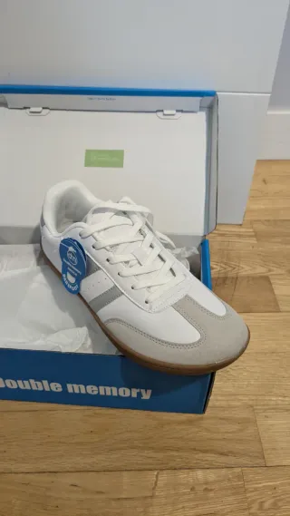 PRECIO NEGOCIABLE. ESCUCHO OFERTAS. Zapatillas de estilo deportivo en color blanco con detalles plateados. - Diseño tipo barefoot. - Suela de goma. - Cierre con cordones. Totalmente nuevas y sin usar. En su caja original.