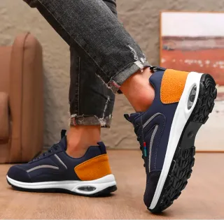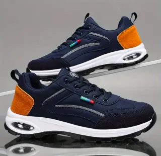Zapatillas deportivas con un diseño moderno y detalles llamativos. - Combinación de colores azul y naranja. - Suela con cámara de aire para mayor comodidad. - Detalle de banda lateral reflectante. - Puntera y talón reforzados. Nuevas sin caja talla 39