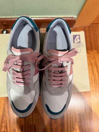 Zapatillas deportivas con un diseño moderno y detalles en rosa. - Exterior de material sintético. - Cierre de cordones. - Detalle de estampado floral en los laterales. - Cuello y lengüeta acolchados para mayor comodidad. Nuevas sin caja talla 41