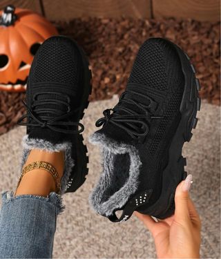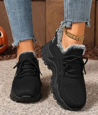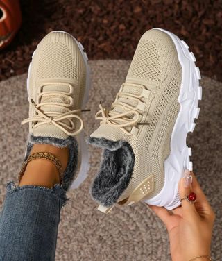Zapatillas de mujer con un diseño moderno y cómodo. - Exterior de malla transpirable. - Forro interior suave y cálido. - Suela gruesa y antideslizante. - Cierre de cordones.