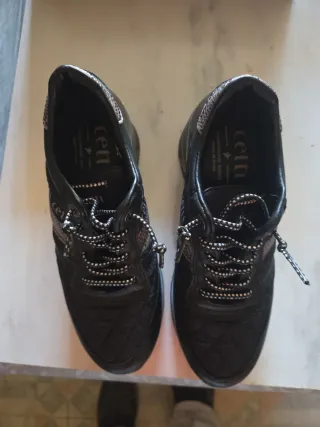 Precio de tienda 110e , A estrenar. De invierno. Zapatillas Cetti a estrenar, con un diseño moderno y elegante. - Combinación de negro y detalles plateados. - Cierre con cordones. - Suela gruesa y cómoda.
