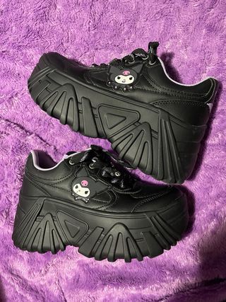Zapatillas de plataforma con diseño de Kuromi. - Color negro con detalles morados. - Suela gruesa y robusta. - Adorno de Kuromi en el lateral. usadas una vez en casa para probarlas. lo que se ve en las fotos Hago descuento por más de tres artículos. ⚠️estoy enferma, y a veces no me da tiempo a enviar el paquete en el plazo⚠️ 🚨Preguntar mi disponibilidad antes de comprar⚠️ ⚠️No trabajo con correos⚠️ Recogida en mano solo en Alcantarilla o El Campello.