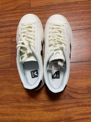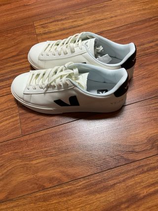 Zapatillas de la marca Veja para hombre, con un diseño moderno y versátil. - Exterior de cuero blanco. - Detalle lateral en color negro. - Suela de goma. - Cierre con cordones. - Talla 44 EUR