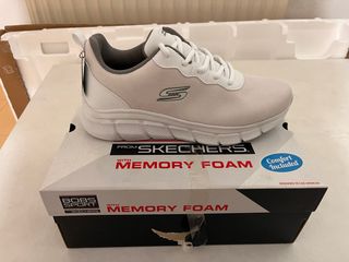 Zapatillas Skechers Bobs Sport con Memory Foam. - Color gris y blanco. - Talla 46. - Diseñadas en Los Ángeles.