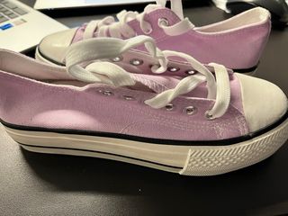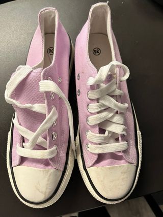 Zapatillas de lona estilo Converse en color lila. Cuentan con cordones blancos y puntera reforzada. - Cierre de cordones. - Diseño de caña baja. - Suela de goma.