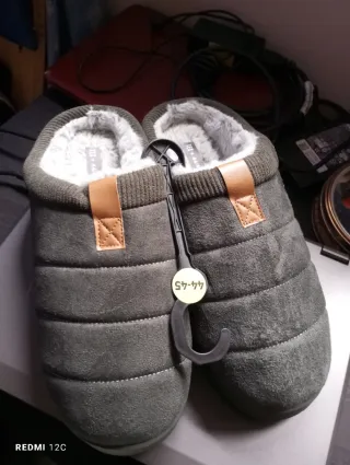 Zapatillas de caballero con un diseño acolchado y forro interior suave. - Talla 44-45 - Color verde - Exterior en ante sintético. - Detalle de tirador en la parte trasera. - Ribete de punto en la apertura.