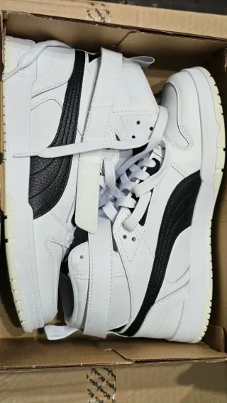 Zapatillas altas de Puma con un diseño moderno y deportivo. Solo se uso 1 vez. - Combinación de blanco y negro. - Cierre con cordones y correa de velcro. - Detalle de la franja característica de la marca.