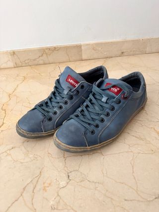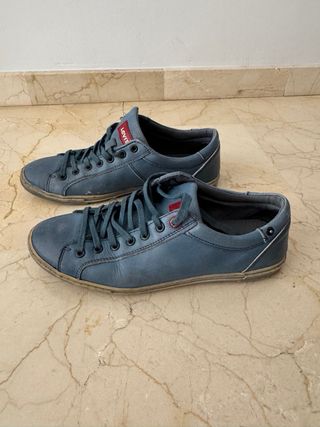Zapatillas de cuero en color azul de la marca Levi's. - Cierre con cordones. - Detalle de logo en la lengüeta. - En buenas condiciones - Talla 42