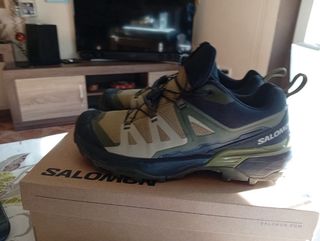 Zapatillas de senderismo de la marca Salomon en color verde. Diseñadas para ofrecer comodidad y agarre en terrenos irregulares. - Cierre rápido con cordones. - Suela de goma para mayor tracción. - Parte superior de malla transpirable.