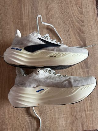 Zapatillas deportivas Brooks Glycerin Max en color blanco y azul. Diseñadas para ofrecer comodidad y rendimiento. - Parte superior de malla transpirable. - Mediasuela con tecnología DNA LOFT v3. - Suela de goma duradera. - Cierre con cordones. - 10km de uso