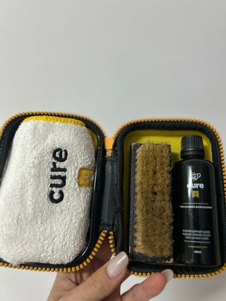 Kit limpieza zapatillas Crep Cure+ nuevo Vendo kit de limpieza Crep Cure+ original, completamente nuevo sin usar. Incluye cepillo, limpiador, paño de microfibra y estuche. Ideal para mantener zapatillas y calzado en perfecto estado.