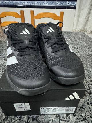 Zapatillas de entrenamiento Adidas Dropset 4. - Diseño en color negro con detalles blancos. - Parte superior de malla transpirable. - Suela de goma para mayor agarre. - Perfectas para levantamientos de peso (muy estables) - Para entrenamientos de fuerza/crossfit/hyrox/hybrid/halterofilia