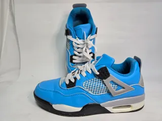 Zapatilla deportiva estilo retro. Se entregan lavadas, en buen estado, pero sin su caja original. - Diseño icónico de Jordan. - Combinación de colores azul y gris. - Cordones blancos.