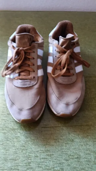 Zapatillas Adidas Iniki I-5923 en color marrón y blanco muy poco usadas. Un clásico renovado con un diseño retro y moderno. - Parte superior de ante y malla. - Mediasuela Boost para mayor comodidad. - Suela de goma. - Cierre con cordones. Adidas ha explorado sus archivos de 1970 en busca de la silueta original de estas zapatillas. Las adidas Iniki Runner son una combinación de las zapatillas old school con un toque retro que llama la atención, con todo lo bueno de la tecnología del siglo XXI. La mediasuela con tecnología Boost aporta una amortiguación perfecta, haciendo de esta sneaker una zapatilla comfortable y ligera.