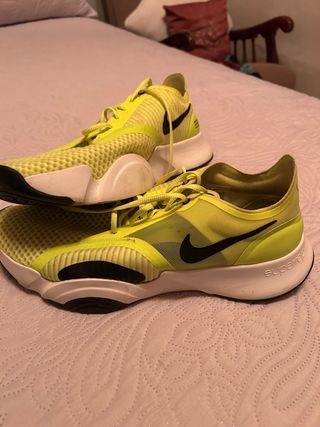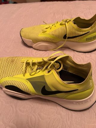 Zapatillas de running Nike SuperRep en llamativo color amarillo neón. - Diseño deportivo y moderno. - Suela blanca con detalles en negro. - Logo de Nike en negro.