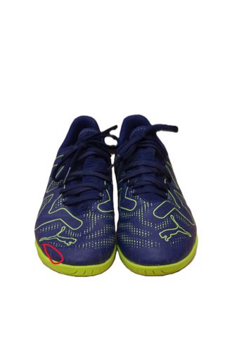 Zapatilla deportiva Puma Future Play It Sólo se han usado 3 veces en realidad, compradas por 45€. Tienen algunos roces, de ahí que las haya rebajado tanto, están marcados en rojo en las fotos. Tamaño: 37.5 - Diseño en azul con detalles en verde. - Ideal para entrenamiento.