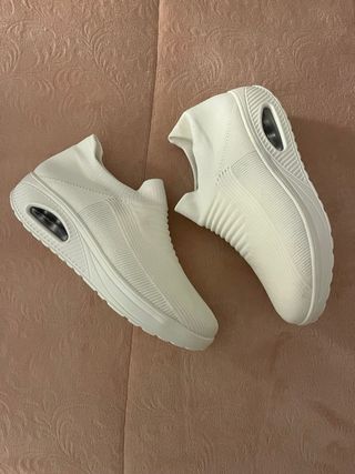 Comodísimas zapatillas de estilo calcetín en color blanco. Perfectas para el día a día. Una de ellas tiene como una pequeña mancha rosa (última foto) - Diseño elástico tipo calcetín. - Suela con amortiguación de aire. - Tejido transpirable. - Están sin usar.