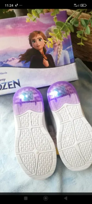 Zapatillas infantiles con diseño de Frozen. Talla 29 - Personajes de Frozen en los laterales. - Detalles holográficos. - Cierre de velcro - Talla 29