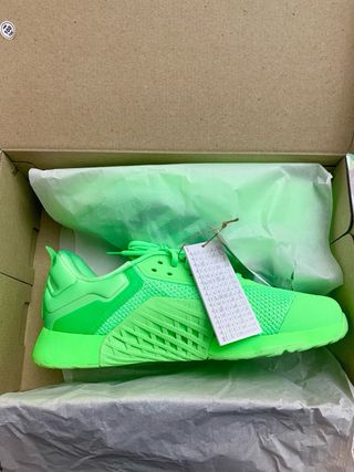 Zapatillas deportivas Adidas en color verde, diseñadas para entrenamiento de crossfit. - Tecnología GeoFit. - Suela con tecnología Dual Density. - Diseño con las tres bandas características de la marca. -Totalmente originales.