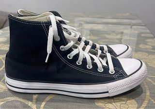 Botas nuevas, a estrenar, de caña alta de la marca Converse, modelo Chuck Taylor All Star. - Color azul marino. - Cordones blancos. - Suela marrón. - Logo circular de All Star en el lateral. Las zapatillas no se han sacado de su caja, no se han usado, porque me regalaron unas iguales.