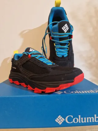 Zapatillas Columbia Elderwood Waterproof en color negro con detalles en rojo. - Diseño moderno y funcional. - Suela de goma con buen agarre. - Cierre de cordones. - Tirador trasero para facilitar el calce.