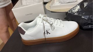 Zapatillas de la marca Calvin Klein con un diseño moderno. - Exterior blanco con detalles marrones. - Suela de goma marrón. - Logo de la marca en el lateral. - Incluye su caja original y etiqueta No se ha usado estan nuevas a estrenar Las vendo porque se paso el plazo de devolucion (precio original 140) PRECIO NEGOCIABLE