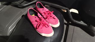 Zapatillas de lona en color burdeos y otras en color blanco, talla 41. - Cierre con cordones. - Suela gruesa para mayor comodidad al andar. - Detalle de logo en la plantilla. - 2 pares de zapatillas 20€, un par 12€.