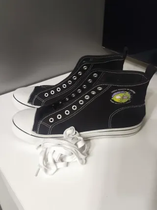 Zapatillas altas de lona con cordones blancos. - Diseño de caña alta. - Suela de goma blanca. - Detalle gráfico en el lateral. - Talla 40 - Son nuevas y maravillosas, vendo porque me quedan grandes. - Envíos Wallapop. Mejor Inpost.