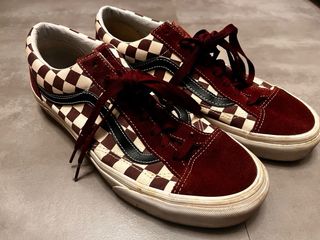 Zapatillas de la marca Vans con un diseño a cuadros en tonos rojos y blancos. - Diseño a cuadros. - Combinación de ante y lona. En muy buen estado, poco uso
