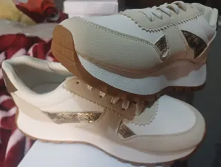 Zapatillas Beige y Dorado Talla 39