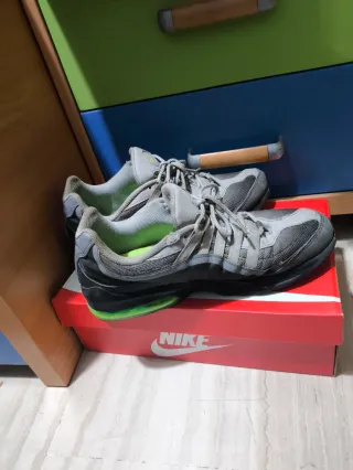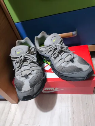Zapatillas deportivas Nike Air Max Vgr en tonos grises con detalles en verde. - Diseño deportivo. - Cierre con cordones. - Logo de Nike en la lengüeta y lateral. Los zapatos están bastante usados