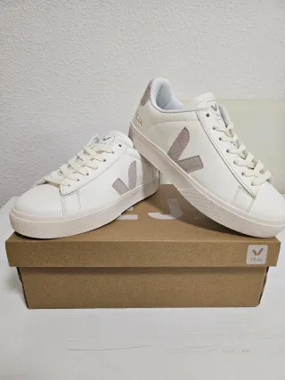 Zapatillas de la marca Veja en color blanco con detalles grises. - Diseño moderno y versátil. - Logo de Veja en el lateral. - Detalle en el talón.