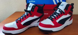 Zapatillas altas de la marca Puma en talla 41. - Combinación de colores rojo y blanco. - Cierre con cordones negros. - Detalle de logo Puma en la lengüeta. - Como nuevas, usadas tan solo una vez pero no son de mi talla.