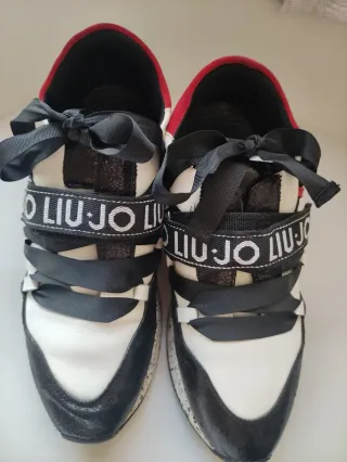 Zapatillas de la marca Liu Jo en combinación de colores blanco y negro. Cuentan con un diseño moderno y detalles llamativos. Tienen signos de uso. - Cierre con cordones. - Detalle de logo en la cinta. - Suela con diseño moteado.
