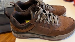 Zapatillas Skechers de color marrón. Cuentan con un diseño moderno y son muy cómodas. - Material exterior de cuero. - Suela de goma. - Cierre con cordones. - Detalle de perforaciones en la puntera. - Plantilla con tecnología Air-Cooled Memory Foam.